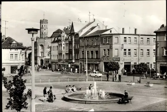 Ak Meuselwitz in Thüringen, Markt, Springbrunnen, Geschäfte