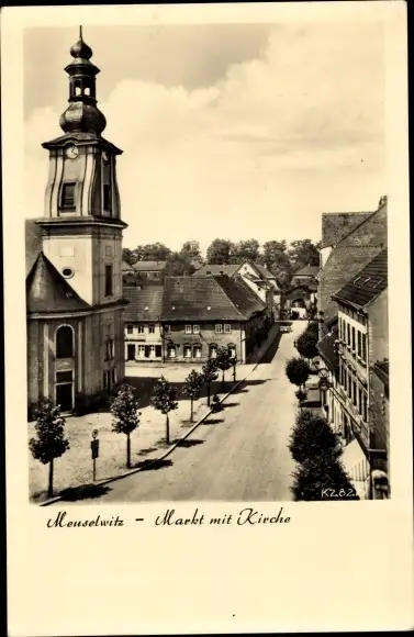Ak Meuselwitz in Thüringen, Markt mit Kirche