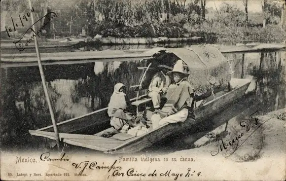 Ak Mexiko, einheimische Familie in ihrem Boot