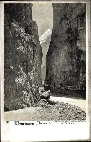 Ak Meyringen Meiringen Kanton Bern, Aareschlucht mit Ritzlihorn