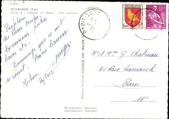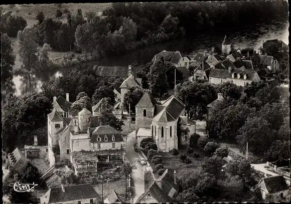 Ak Meyronne Lot, L'Eglise et l'Hotel, Flugbild