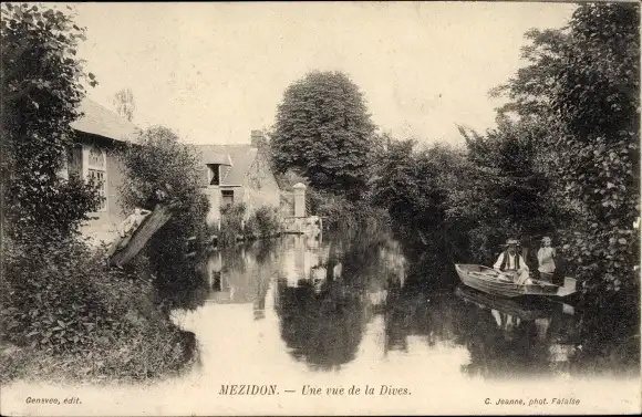 Ak Mézidon Calvados, Une vue de la Dives, Rudern