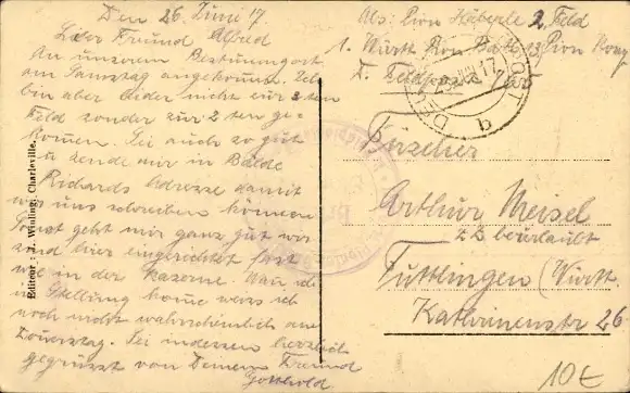 Zustand, siehe Scan, gelaufen, 1917 - ca 14 cm X 9 cm