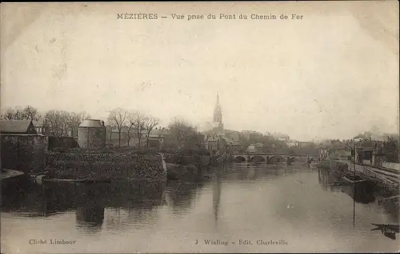 Ak Mézières Ardennes, Vue prise du Pont du Chemin de Fer