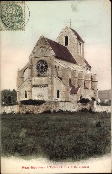 Ansichtskarte, Postkarte, Kirche, Stadtkirche, Gotteshaus, Sakralbau, Mühle