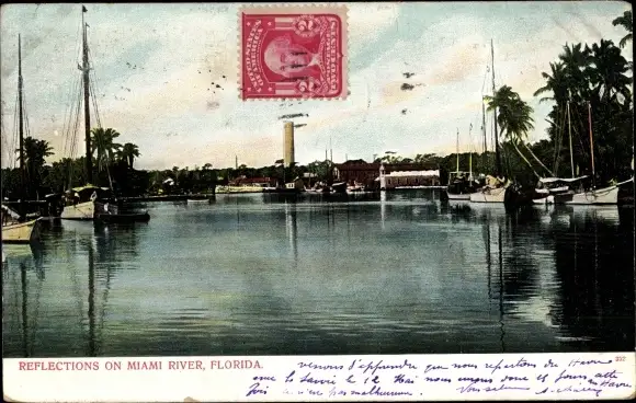 Ak Miami Beach Florida USA, Reflections on Miami River