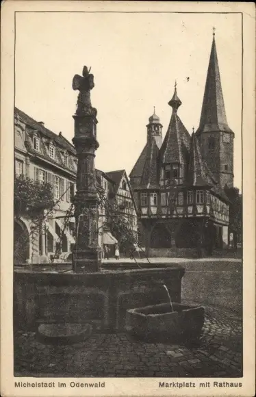 Ak Michelstadt Odenwald, Marktplatz mit Rathaus, Kirche