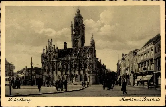 Ak Middelburg Zeeland Niederlande, Markt met Stadhuis