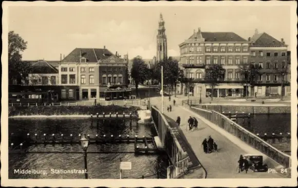 Ak Middelburg Zeeland Niederlande, Stationsstraat