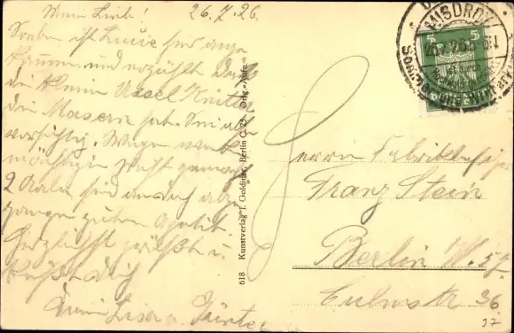 Zustand, siehe Scan, gelaufen, 1926 - ca 14 cm X 9 cm