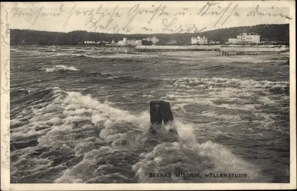 Ak Międzyzdroje Misdroy Pommern, Wellenstudie