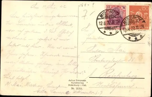 Zustand, siehe Scan, gelaufen, 1922 - ca 15 cm X 9 cm