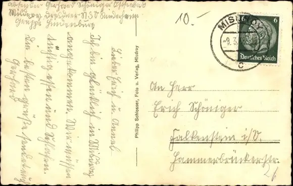 Zustand, siehe Scan, gelaufen, 1938 - ca 14 cm X 9 cm