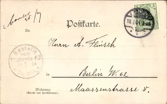 Zustand, siehe Scan, gelaufen, 1904 - ca 14 cm X 9 cm