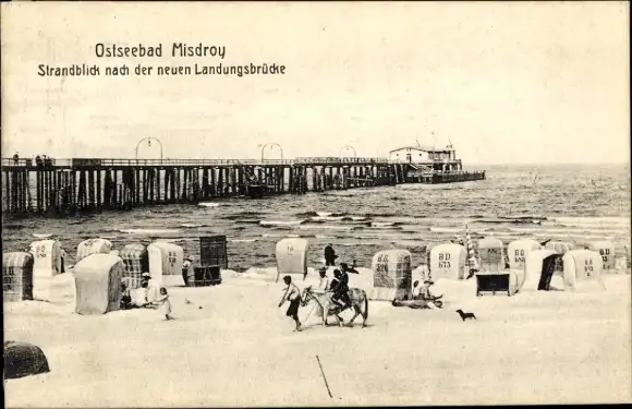 Ak Międzyzdroje Ostseebad Misdroy Pommern, Strand, neue Landungsbrücke