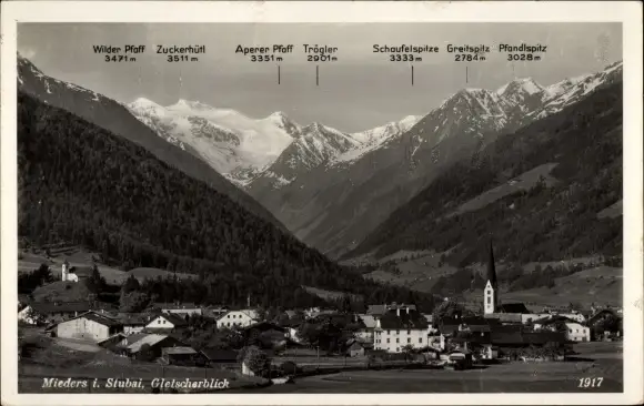 Ak Mieders in Tirol, Gletscherblick, Ort