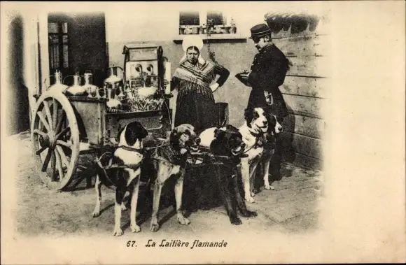 Ak Milchmädchen, Hundekarren, Arbeitshunde