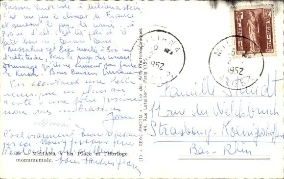 Ak Miliana Algerien, Quadratische, monumentale Uhr