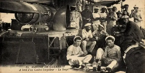 Ak-Militärmarine, an Bord eines Gegentorpedoboots, Suppe