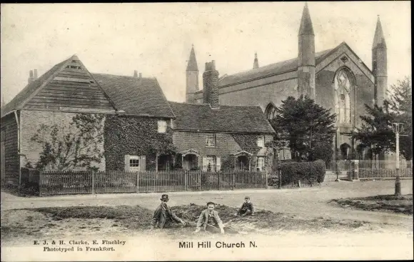 Ansichtskarte, Postkarte, Kirche, Stadtkirche, Gotteshaus, Sakralbau, Mühle