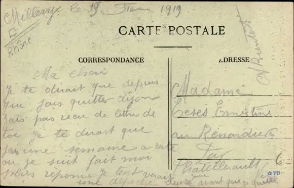 ungelaufen, Rückseite beschrieben, datiert 1919, sehr guter Zustand