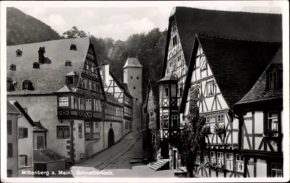 Ak Miltenberg am Main, Schnatterloch, Fachwerkhäuser
