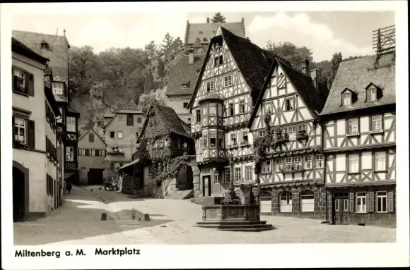 Ak Miltenberg am Main Unterfranken, Marktplatz, Fachwerkhäuser