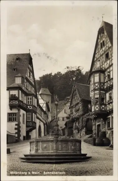 Ak Miltenberg am Main in Unterfranken, Schnatterloch, Fachwerkhäuser
