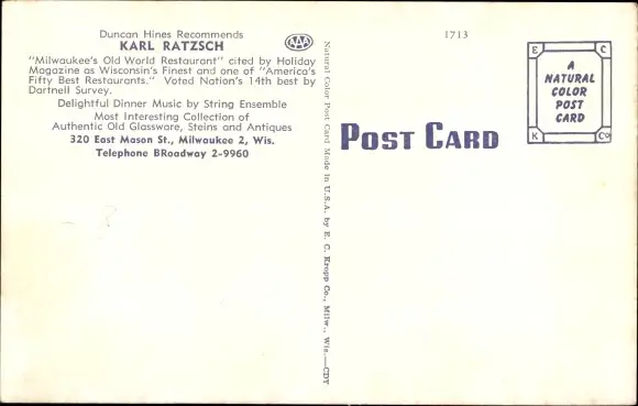 Ak Milwaukee Wisconsin USA, Restaurant von Karl Ratzsch