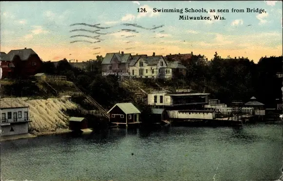 Ak Milwaukee Wisconsin USA, Swimming Schools, as seen from Bridge