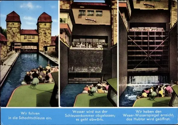 Ak Minden in Westfalen, Fahrgastschifffahrt, Schleuse