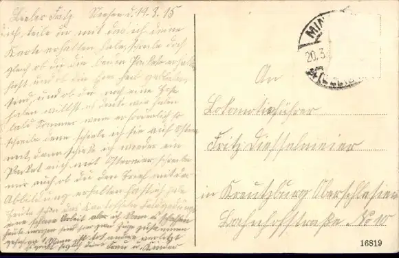 Zustand, siehe Scan, gelaufen, 1915 - ca 14 cm X 9 cm
