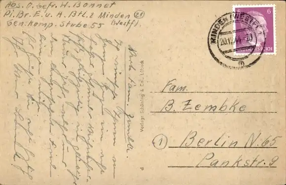 Zustand siehe Scan, gelaufen, 1944 - ca 14 cm X 9 cm