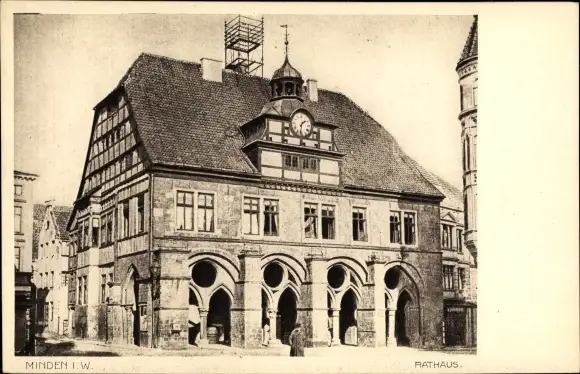 Ak Minden in Westfalen, Rathaus, Turmuhr