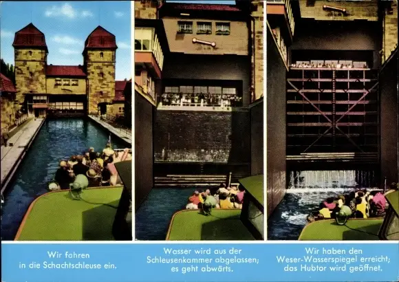 Ansichtskarte, Postkarte, Schleuse, Schleusenkammer, Wehr, Schleuserwärter, Schleusentor