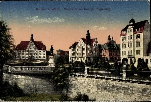 Ak Minden in Westfalen, Wesertor m. Kgl. Regierung