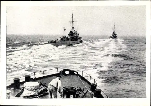 Ak Minensuchboote gehen in See, Kriegsschiffe