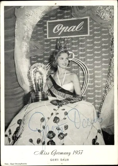Ak Miss Germany 1957 Gerti Daub, Reklame, Opal Strumpfhosen, Autogramm