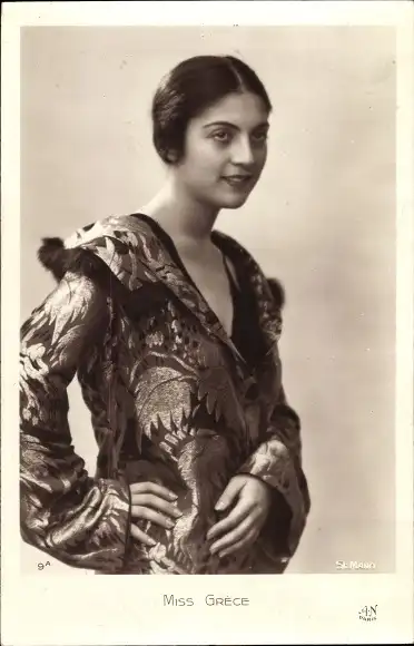 Ak Miss Grèce, Model, Miss Griechenland, Portrait, Seidenmantel