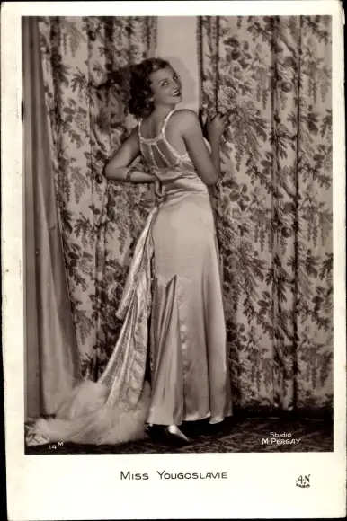 Ak Miss Yougoslavie, Frauenportrait, Kleid, Vorhang, Model