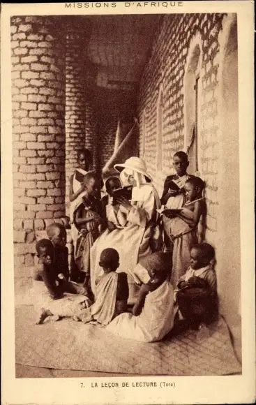 Ak Missions d'Afrique, La Lecon de Lecture, Missionarin, Unterricht