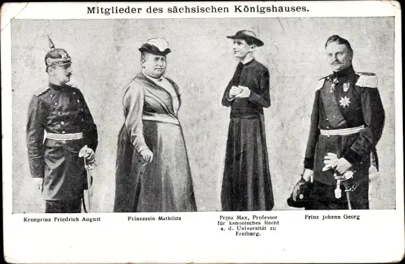 Ak Mitglieder des sächsischen Königshauses, Kronprinz Friedrich August, Mathilde, Max, Johann Georg