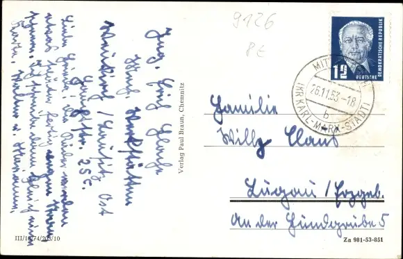 Zustand, siehe Scan, gelaufen, 1953 - ca 14 cm X 9 cm
