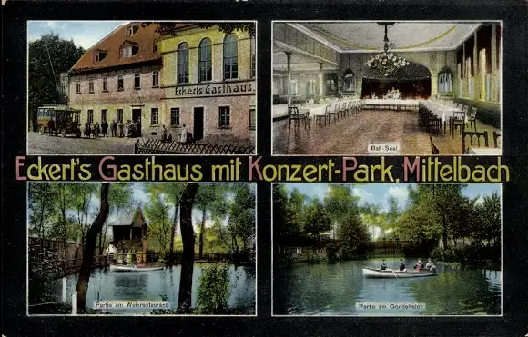 Ak Mittelbach Chemnitz in Sachsen, Eckert's Gasthaus, Innenansicht, Gondelteich
