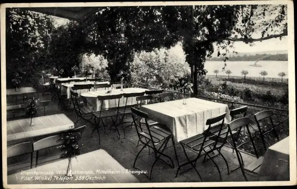 Ak Mittelheim Oestrich Winkel am Rhein Rheingau, Rheinterrasse Wilh. Ruthmann