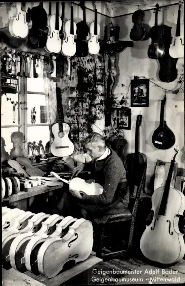 Ak Mittenwald, Geigenbauerwerkstätte, Geigenbaumuseum, Geigenbauer Adolf Baader