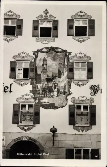 Ak Mittenwald, Hotel Post, Wandgemälde