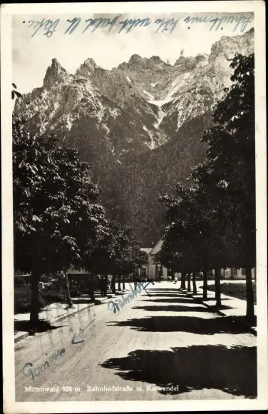 Ak Mittenwald in Oberbayern, Bahnhofstraße mit Karwendel