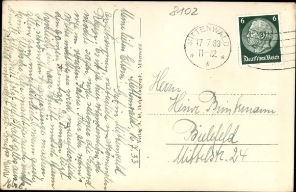 Zustand, siehe Scan, gelaufen, 1933 - ca 9 cm X 14 cm