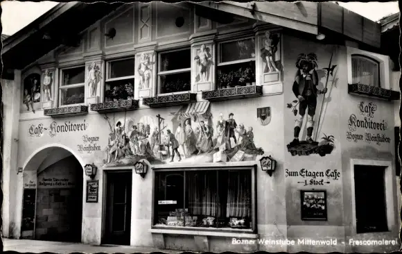 Ak Mittenwald in Oberbayern, Bozener Markt, Cafe Konditorei